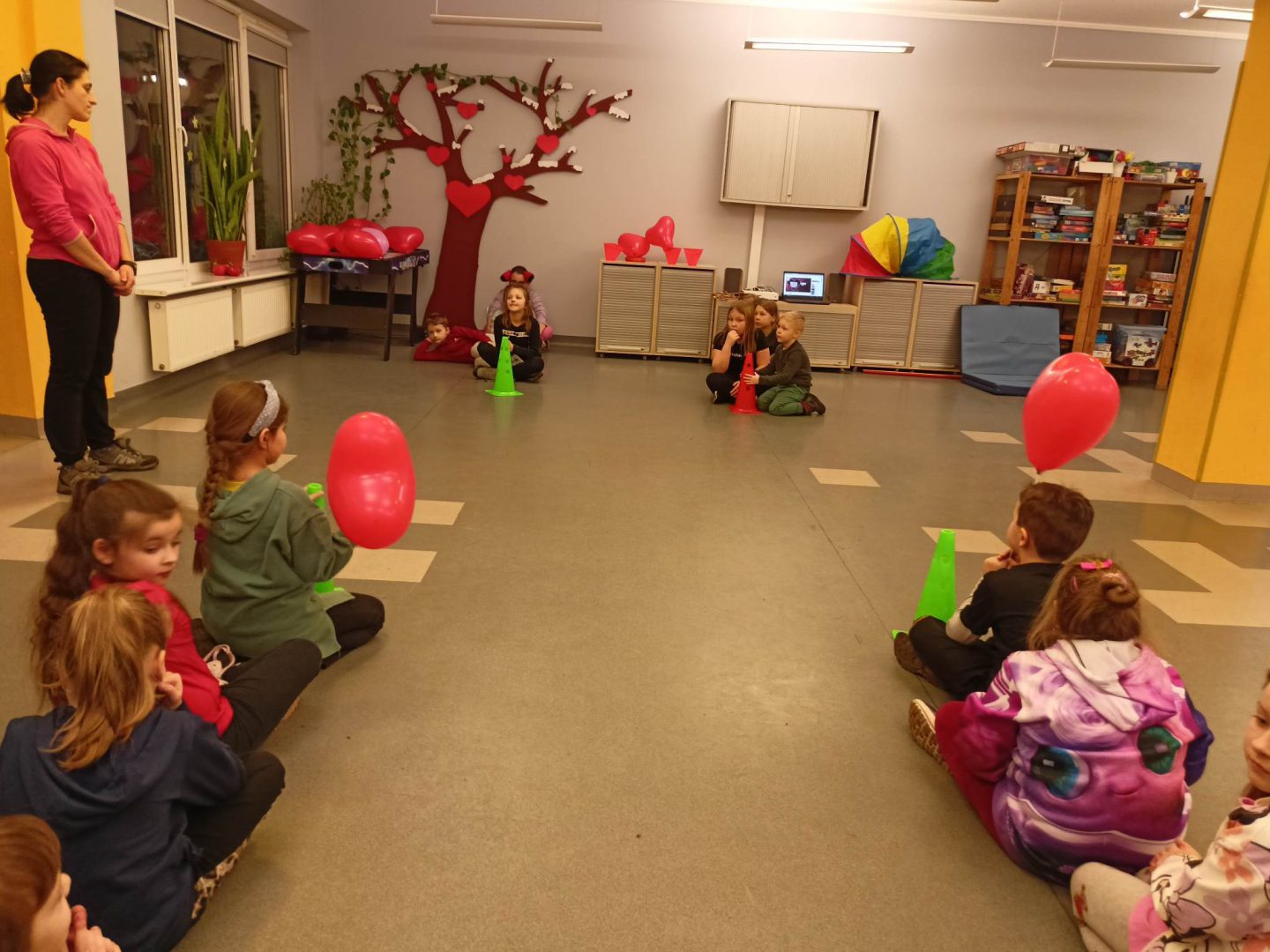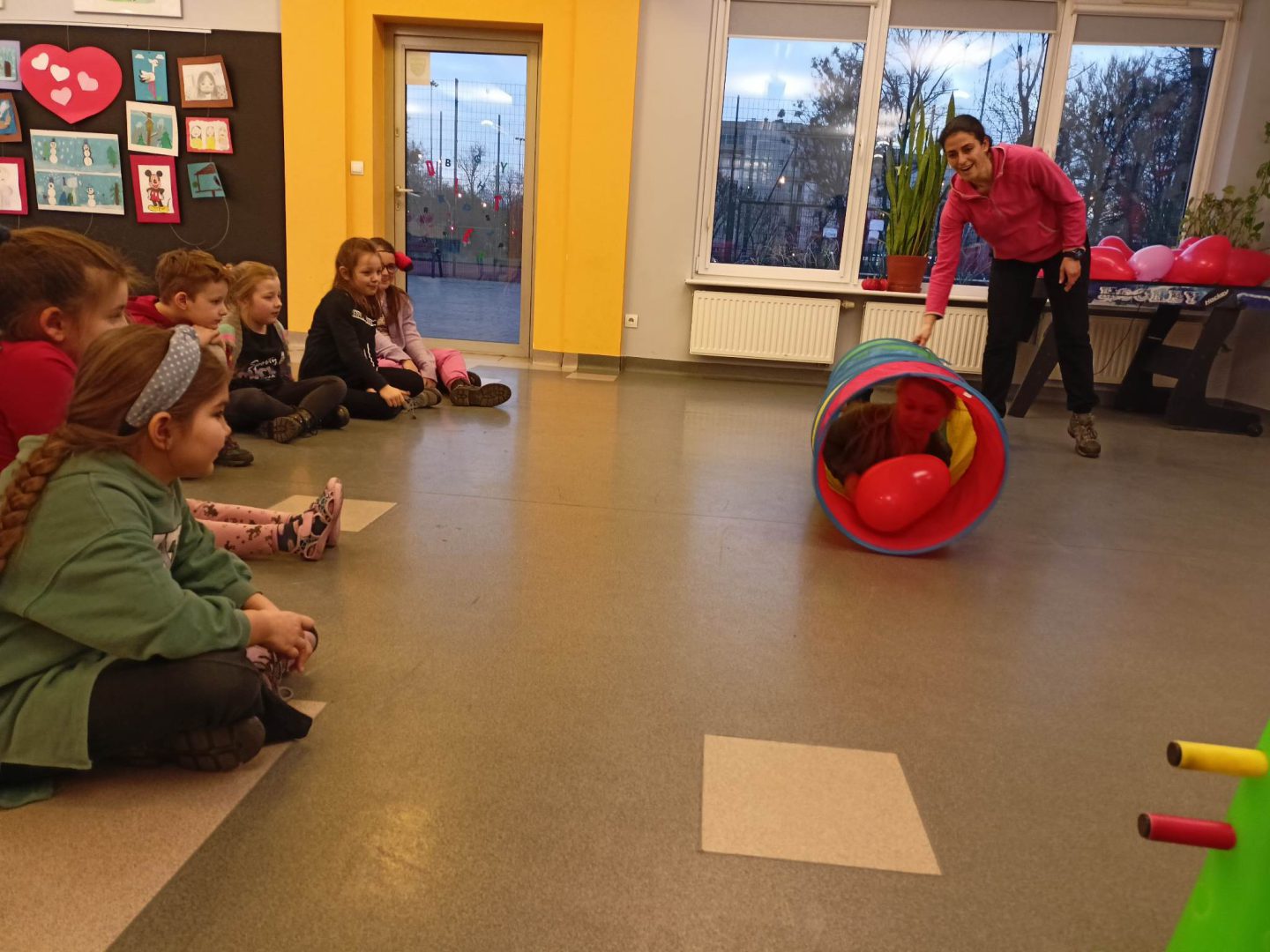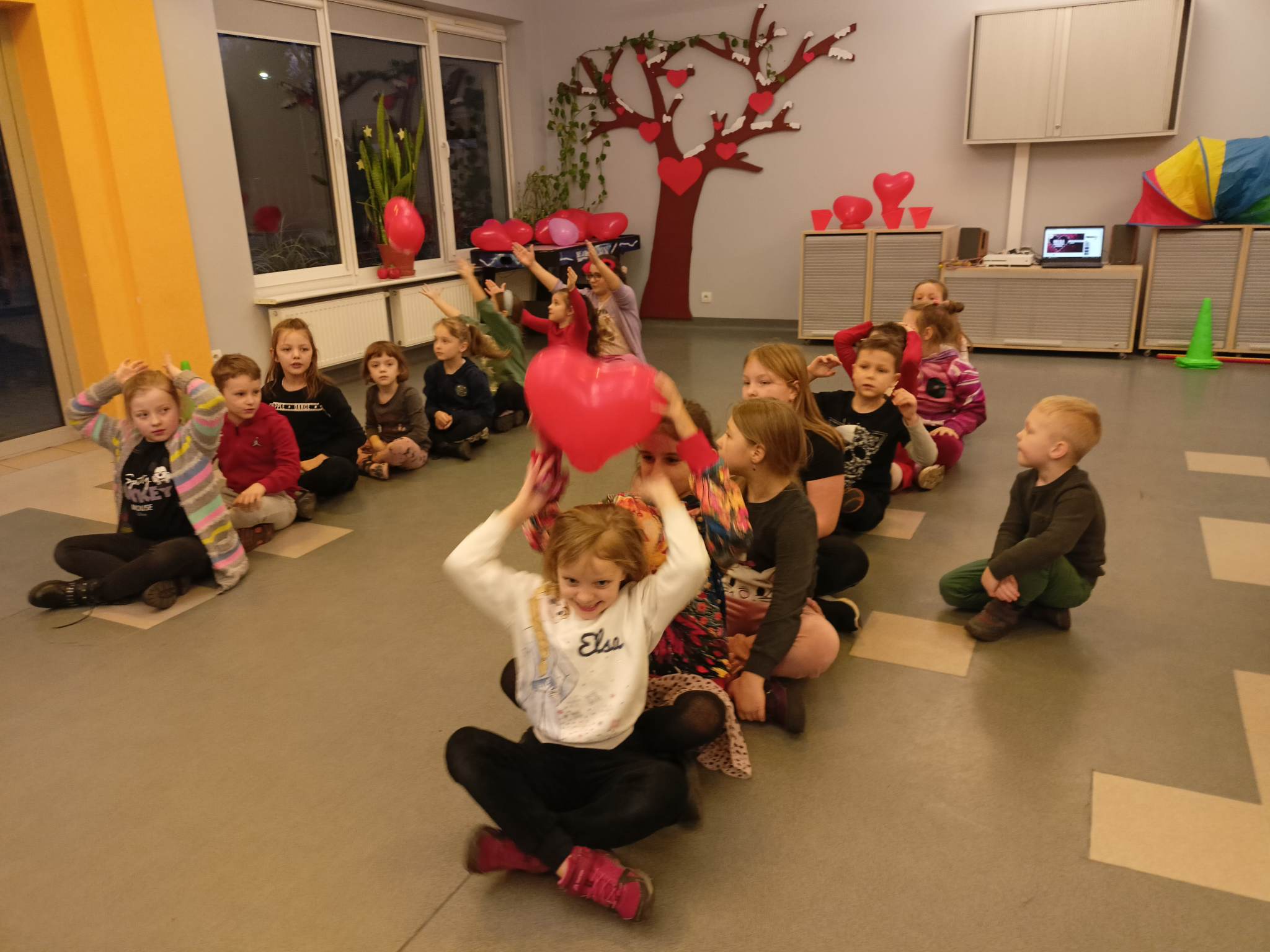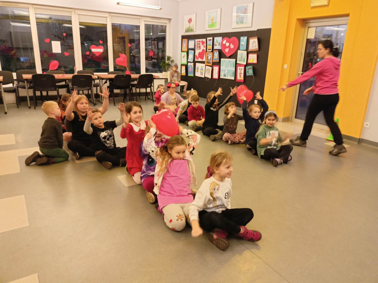 Walentynkowe spotkanie było pasjonujące. Oprócz prac plastycznych odbyły się konkurencje z sercem i tańce z balonami. Emocji było dużo, a rywalizacja przebiegła w sympatycznej atmosferze.