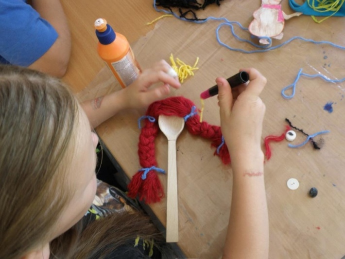 Dzieci tworzyły swoje lalki przy użyciu bardzo różnorodnych materiałów – drewnianych łyżek, włóczki, resztek materiałów, guzików itp. Po wykonaniu kukiełek okazało się, że uczestnikom udało się nadać tworzonym postaciom różne charaktery, od pięknych księżniczek, poprzez przystojnego kawalera, a kończąc na złych oprawcach.