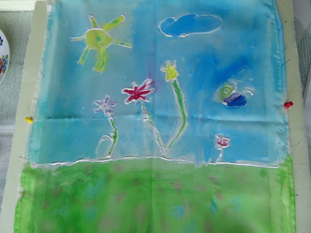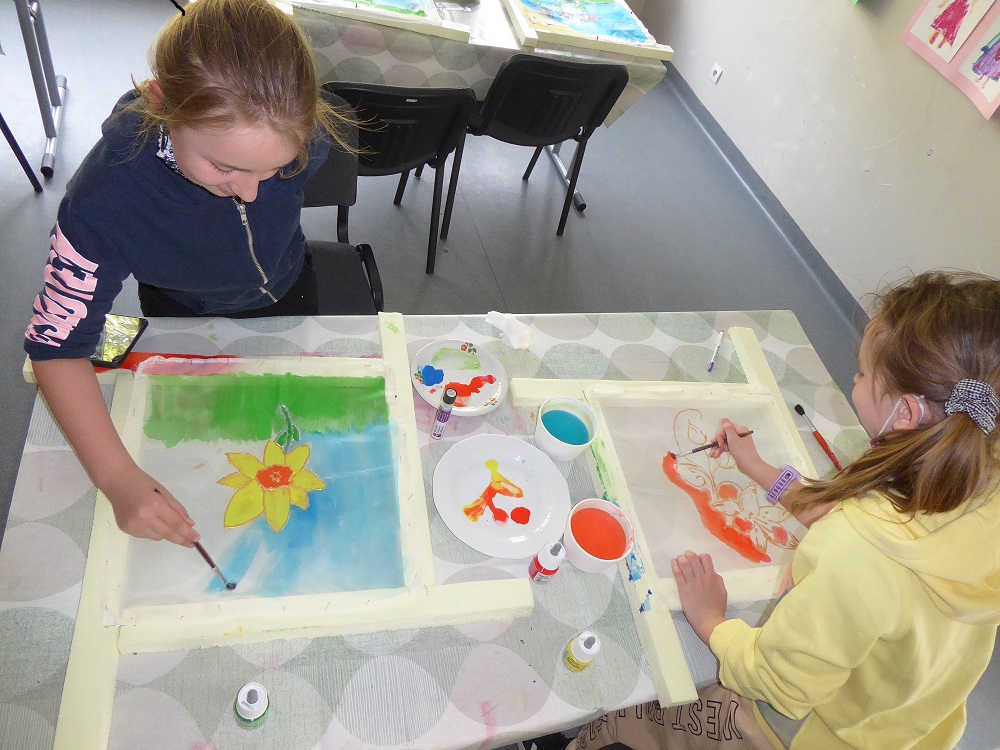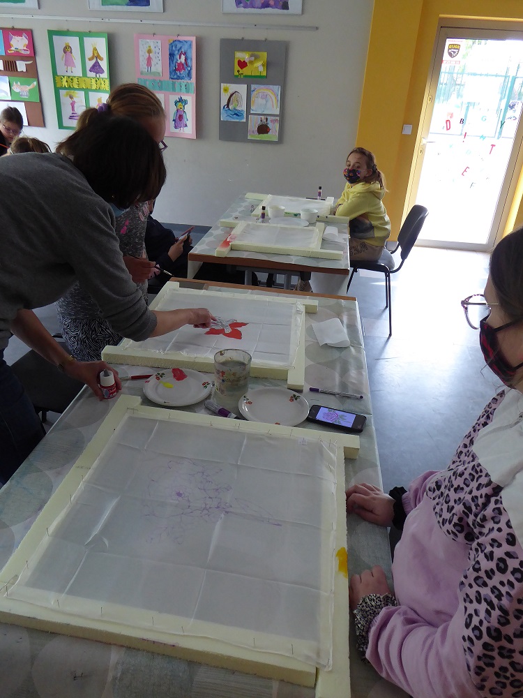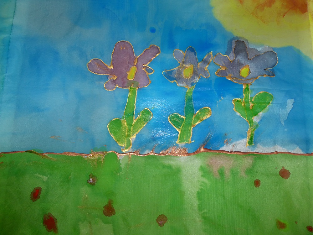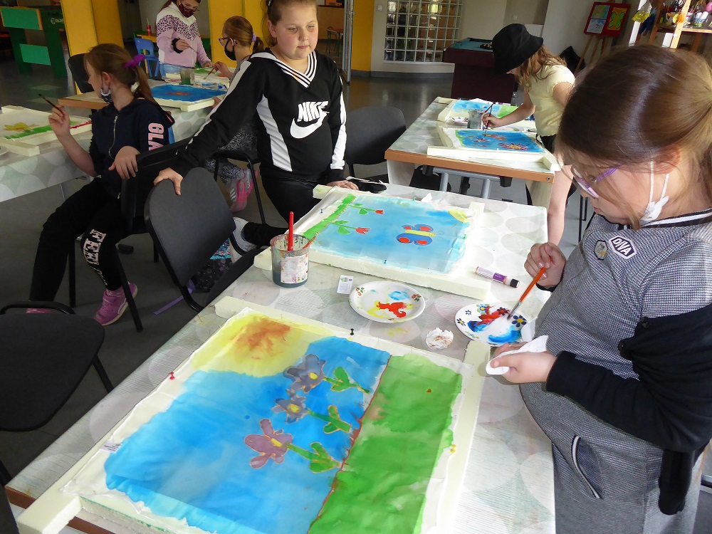 Odbyły się warsztaty malowania na jedwabiu. Dzieci poznały nową , wymagającą skupienia i koncentracji technikę artystyczną. Powstały wiosenne kwiaty.
