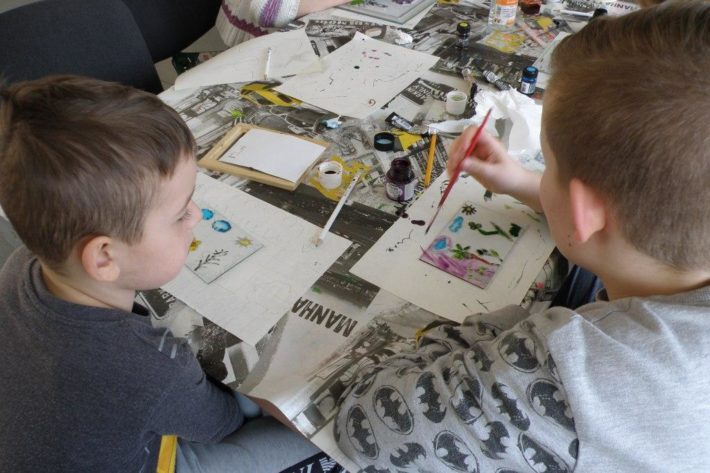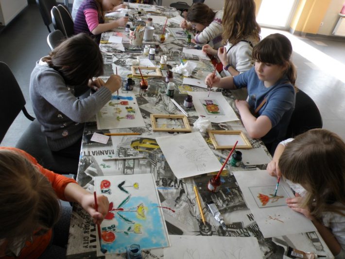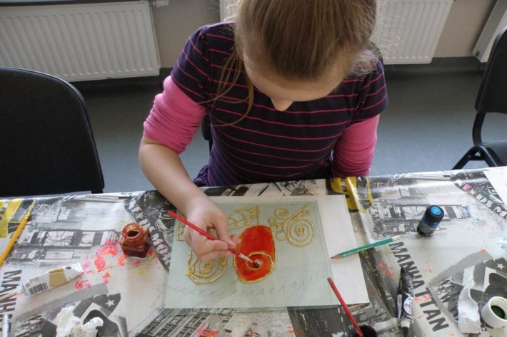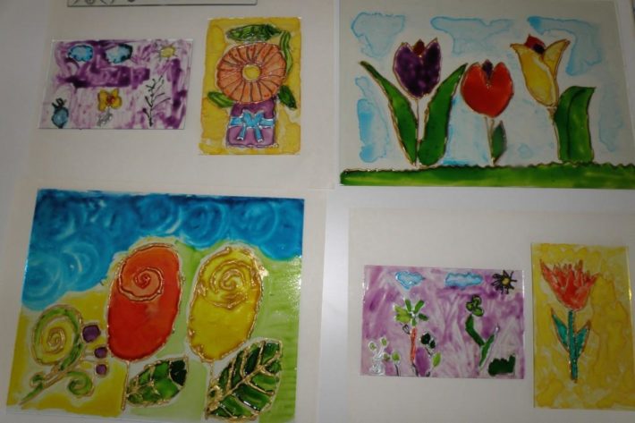 Malowanie na szkle były dla niektórych dzieci techniką nową, inne miały okazje utrwalić wcześniej poznany sposób malowania. Temat „Kwiaty polskie” dawały duże pole do uruchomienie wyobraźni w kompozycjach florystycznych. Towarzysząca warsztatom piękna pogoda przypomniała o przedwiośniu i budzącej się przyrodzie ze snu zimowego.