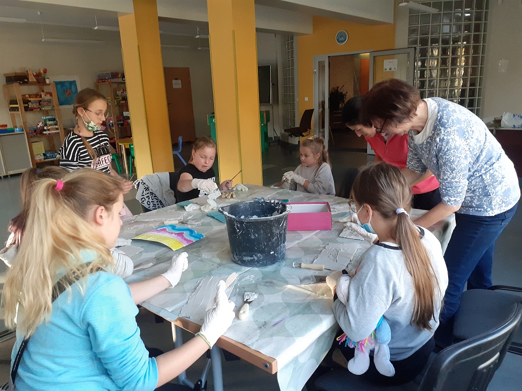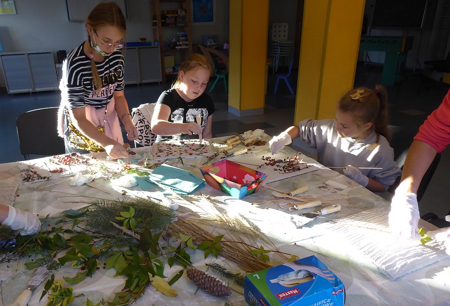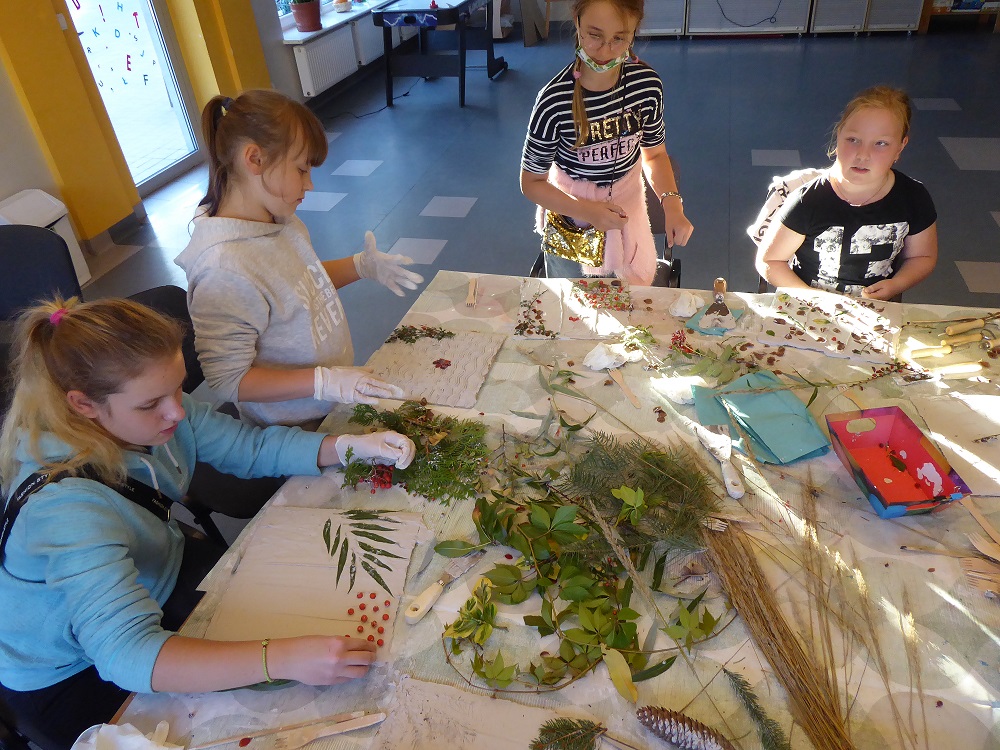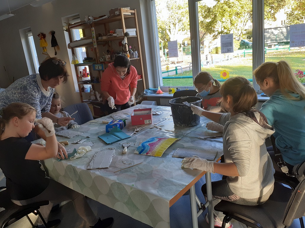 Warsztaty „Naturalne piękno zatopione w obrazie” z gładzi szpachlowej to nowe doświadczenie, które zdobyli wychowankowie podczas dzisiejszych zajęć. Powstały wyjątkowe prace z wykorzystaniem jesiennych darów natury. Zapraszamy na kolejne warsztaty!