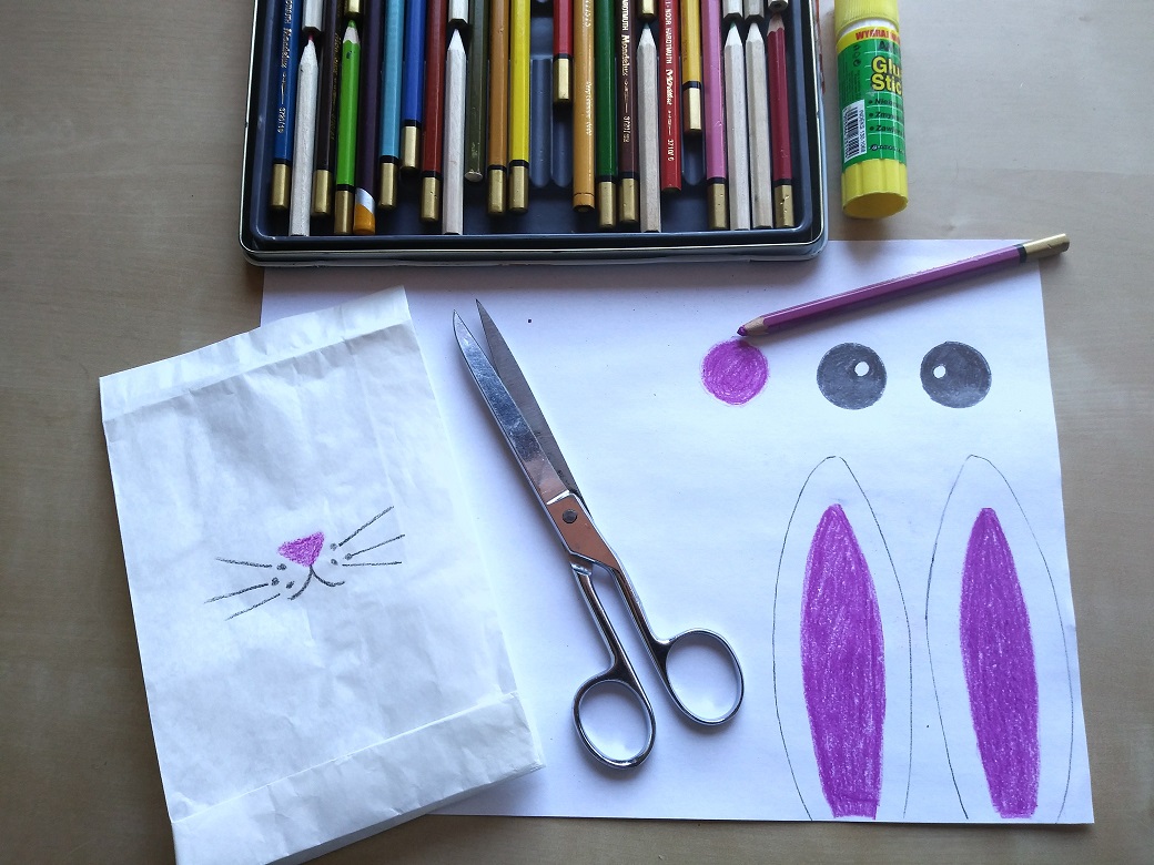 We własnoręcznie wykonany koszyczek można schować zajączka, baranka lub słodycze.