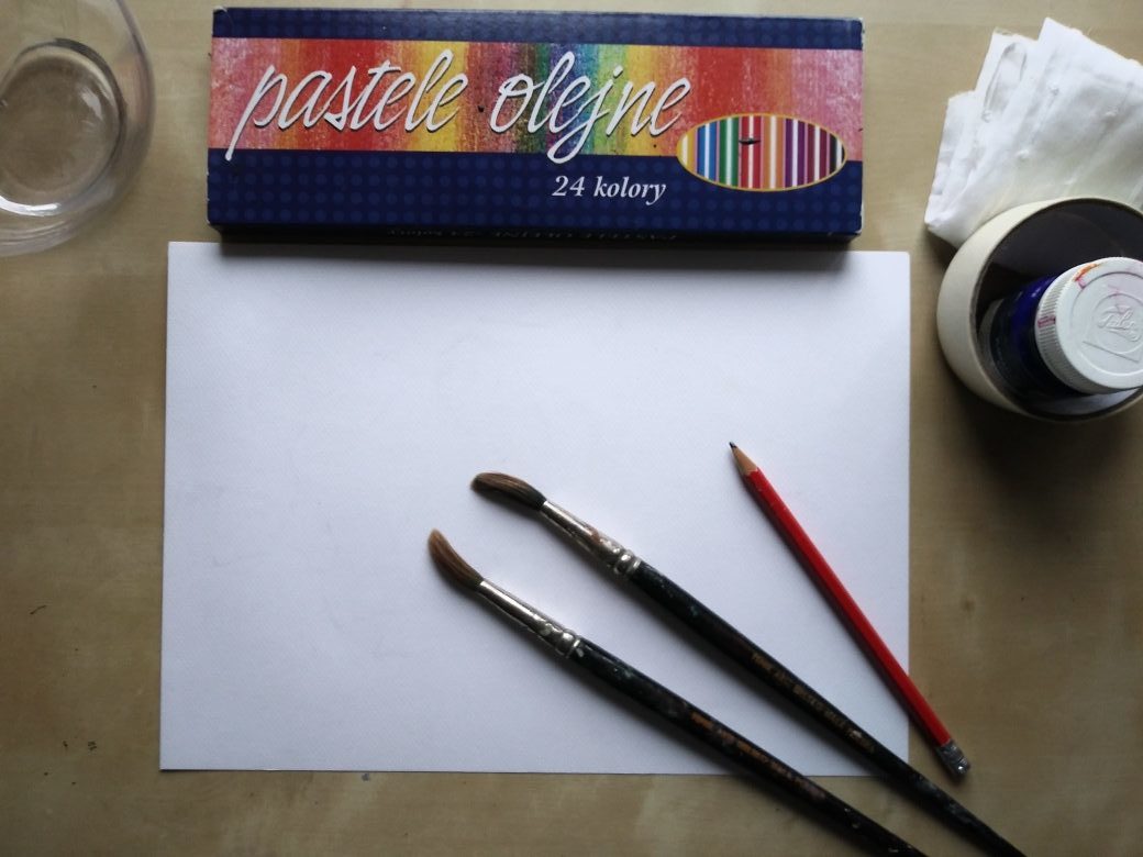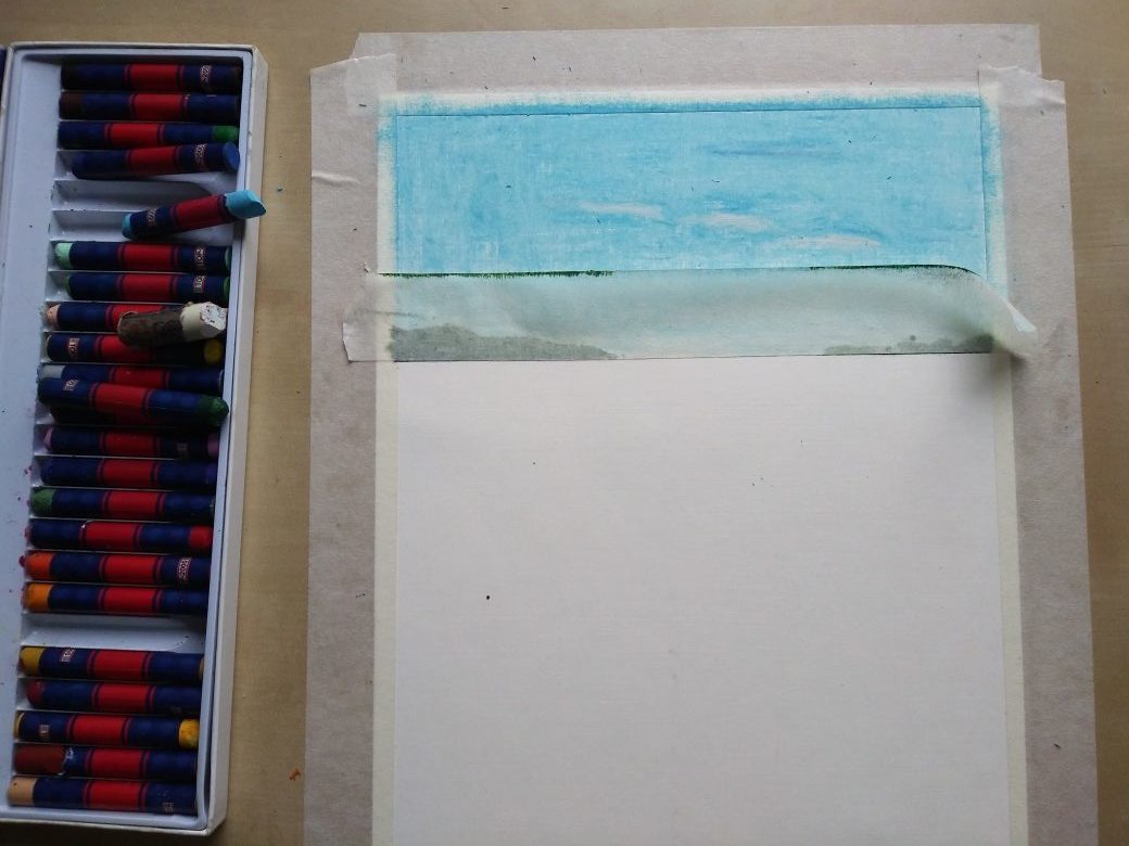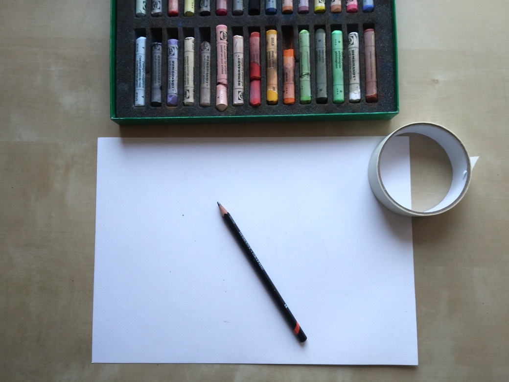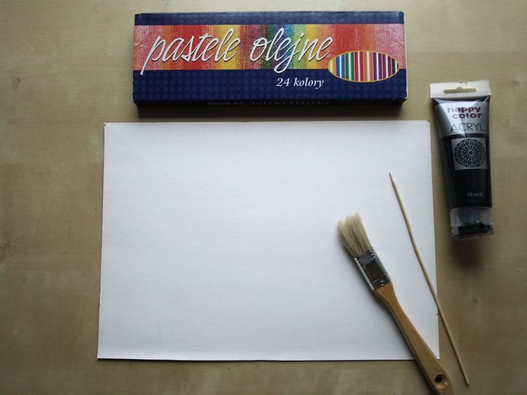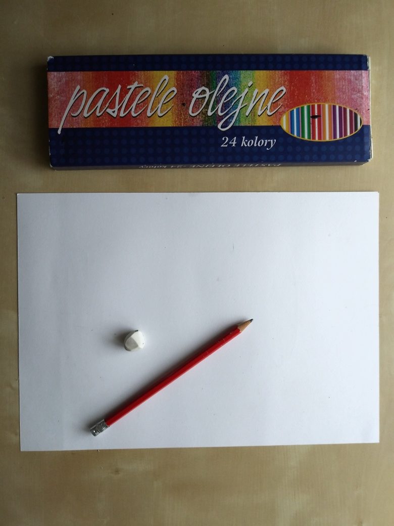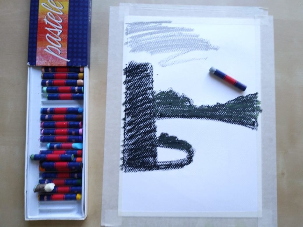 By wykonać rysunek suchymi pastelami potrzebny jest papier o wysokiej gramaturze i z drobną fakturą. Suche pastele są idealne do zapełniania tła, wystarczy parę ruchów kredką, a później tylko techniką rozcierania (palcem lub płatkami do demakijażu) złagodzić przejście pomiędzy odcieniami kolorów. Kolory można nakładać jeden na drugi zaczynając od jasnych. Musimy pamiętać by nie zamazać rysunku w trakcie pracy, więc warto podłożyć czystą kartkę pod dłoń, którą rysujemy. Ostrożnie zdmuchujemy nadmiar kredy, a gdy rysunek jest gotowy werniksujemy go ( może to być lakier do włosów).