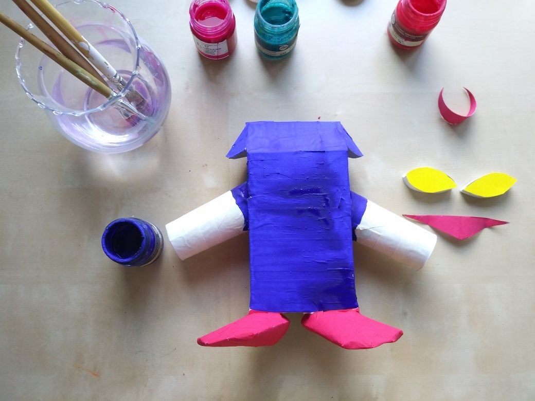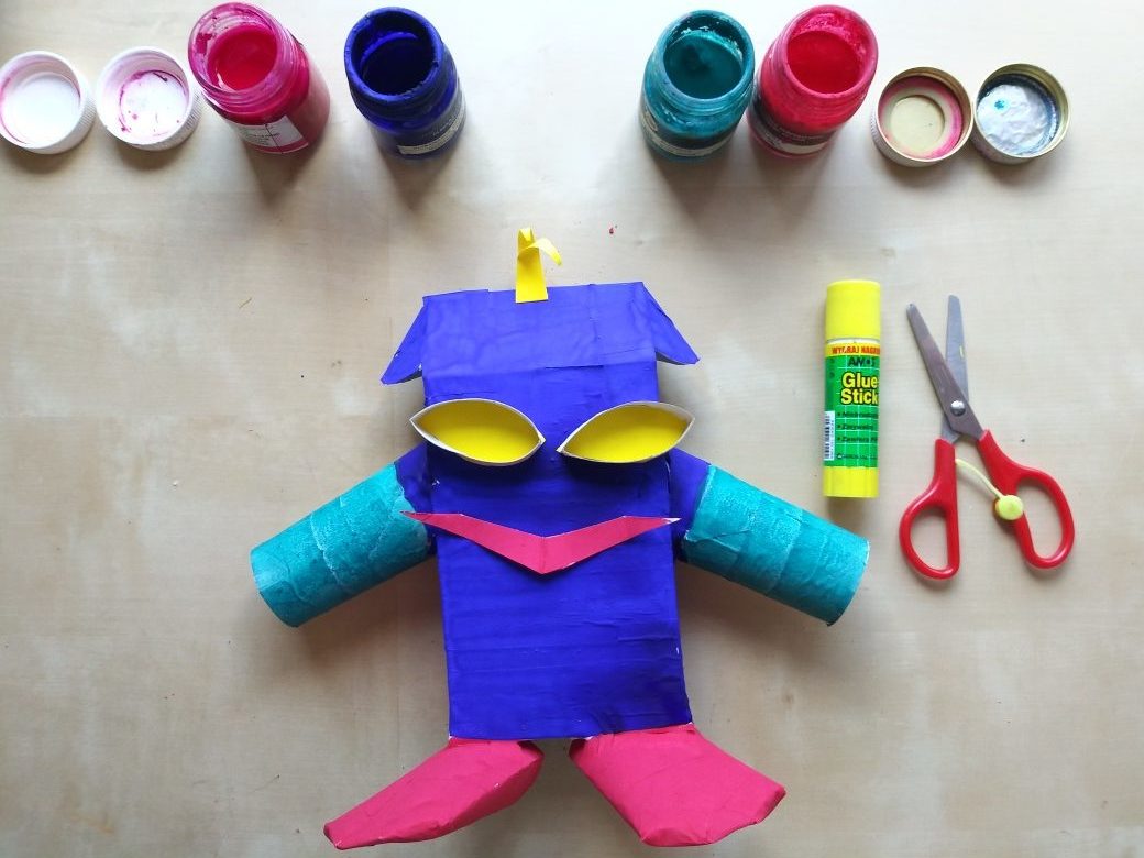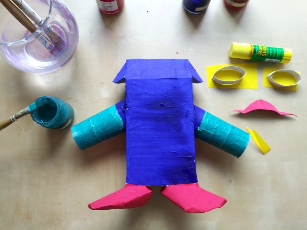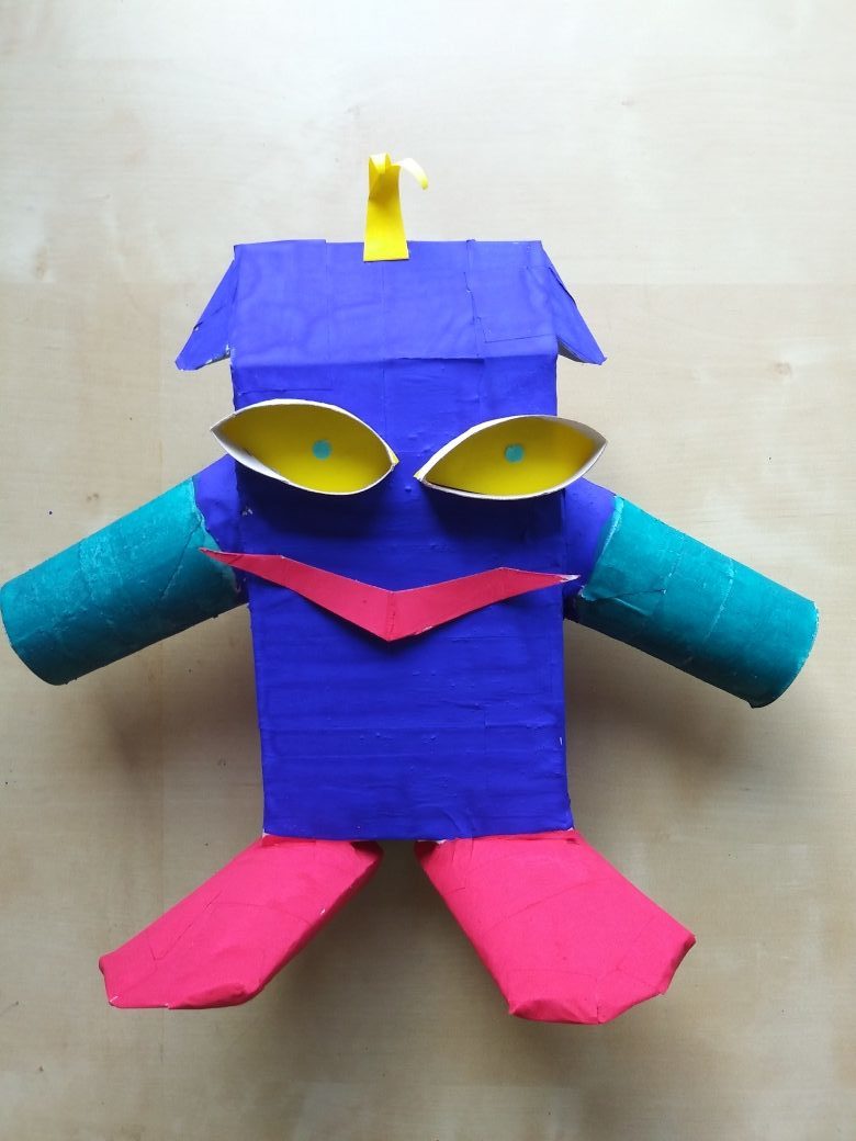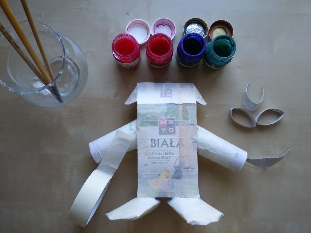 Wykonaj wymyślonego przyjaciela z dostępnych materiałów w domu. Mogą to być pudełka, rolki po papierze toaletowym, karton, ścinki kolorowego papieru. Twój przyjaciel z innej planety może mieć dowolny kolor i kształt. Wszystko jest dozwolone, bo wyobraźnia nie mam granic.