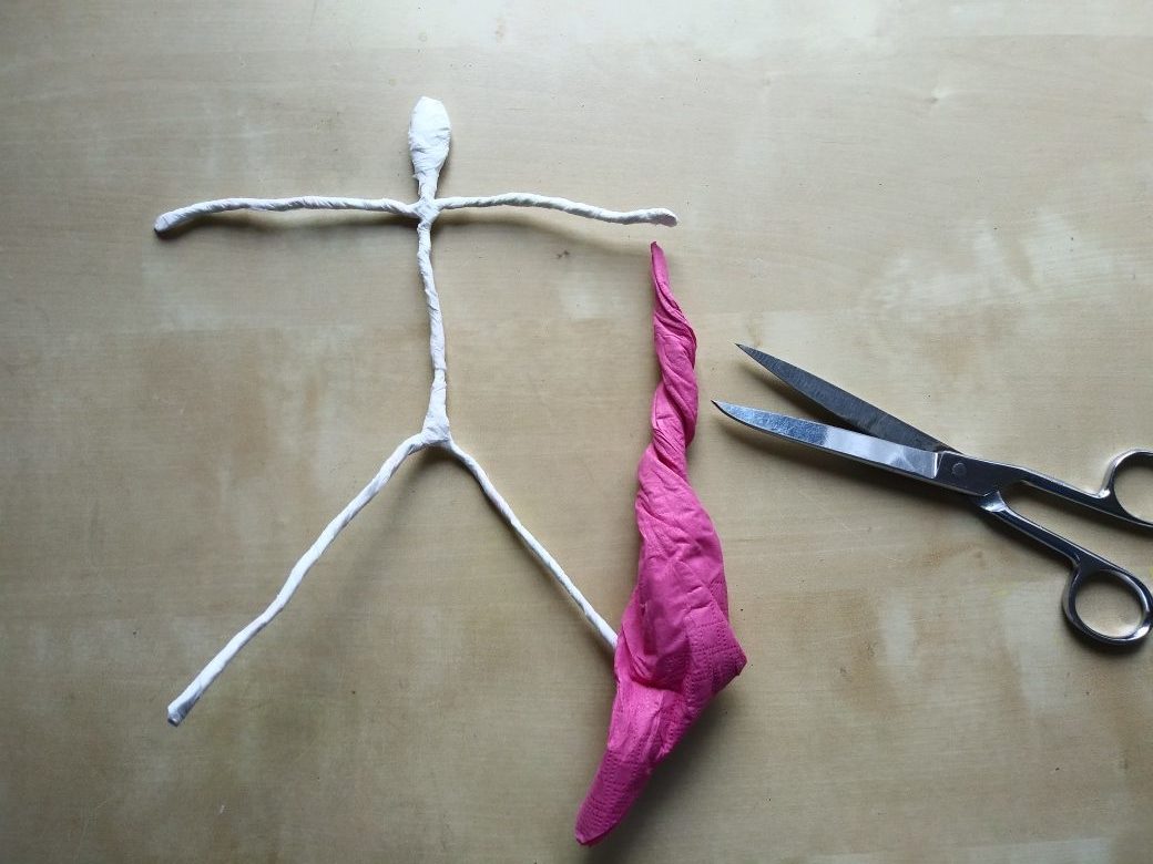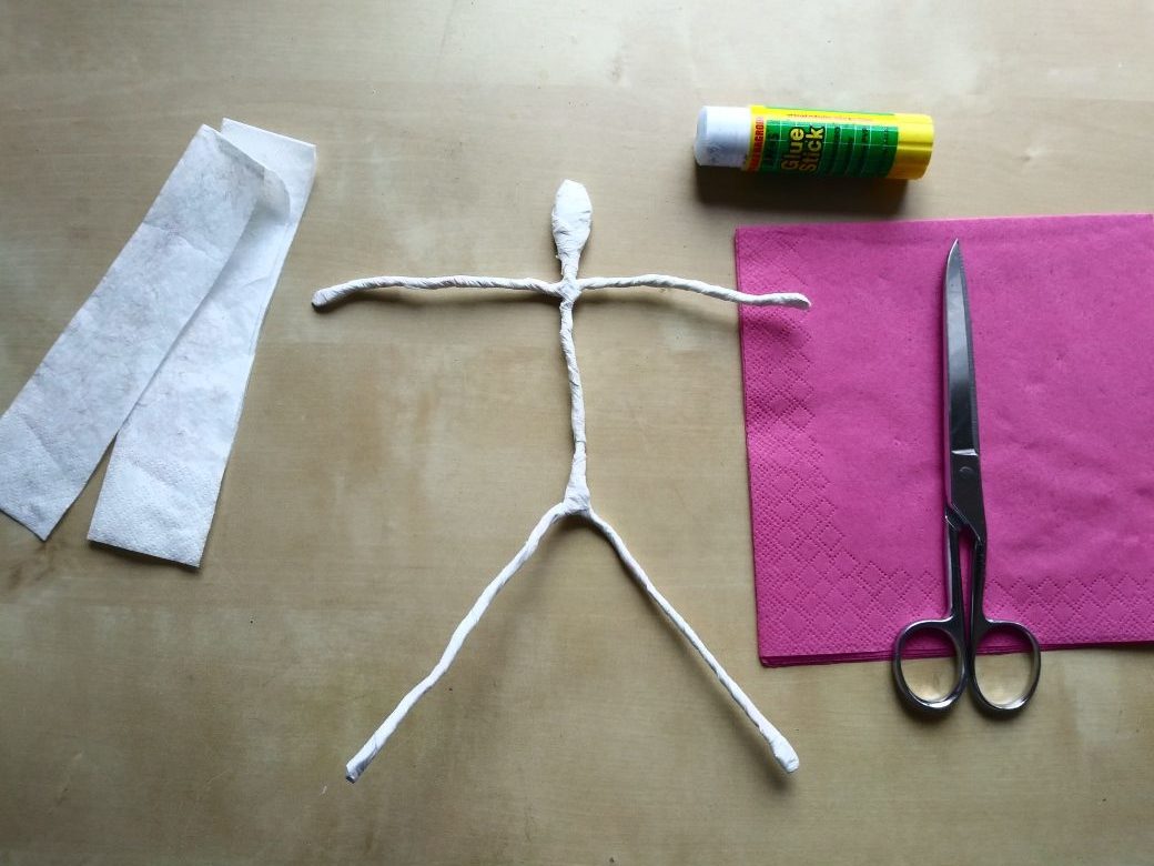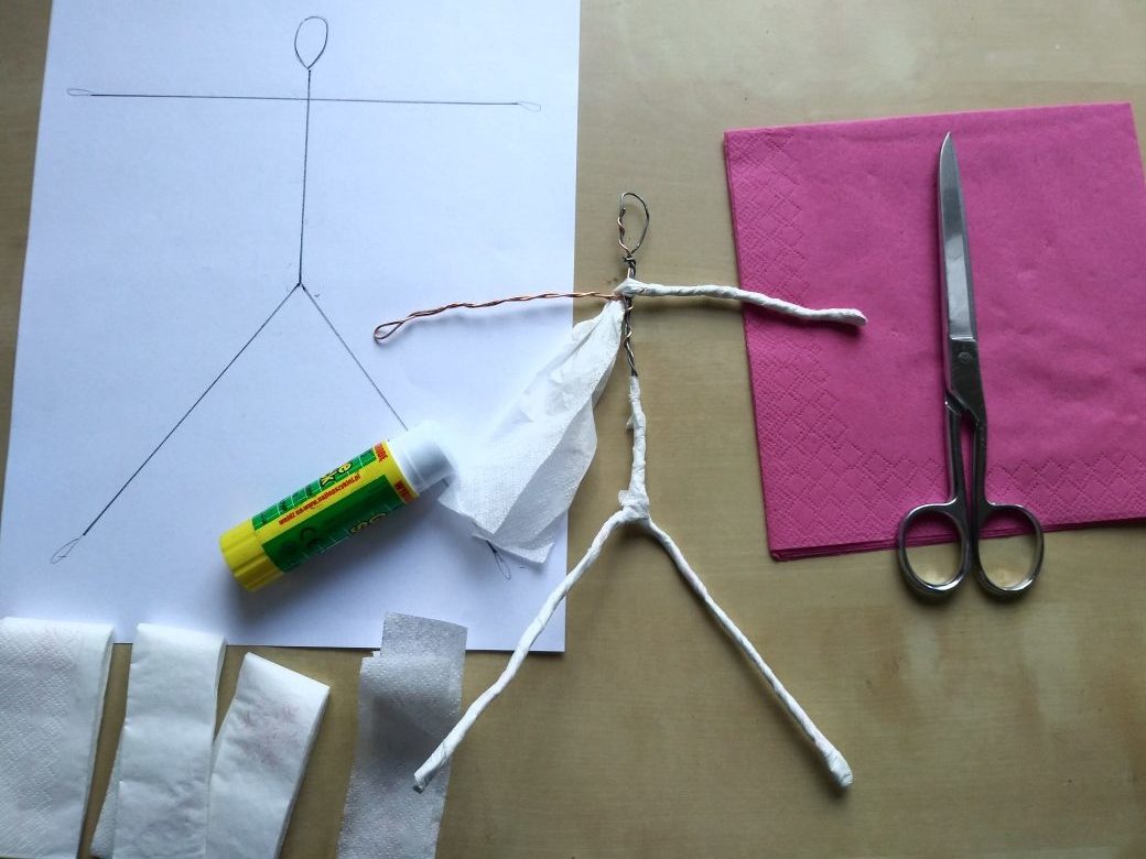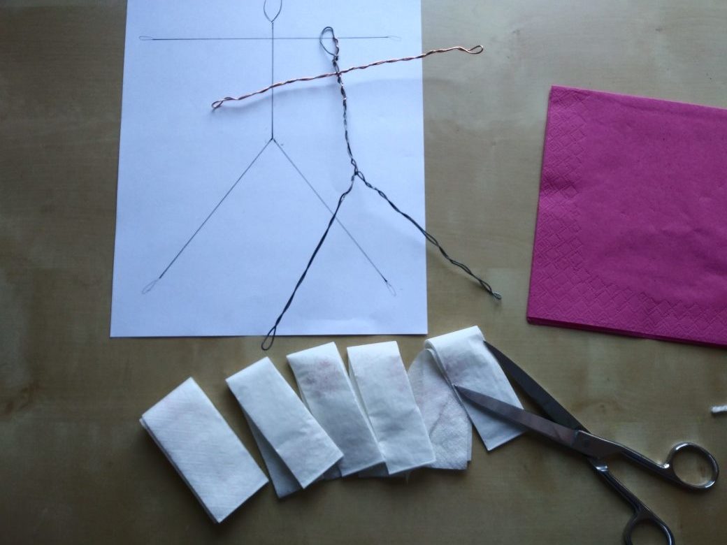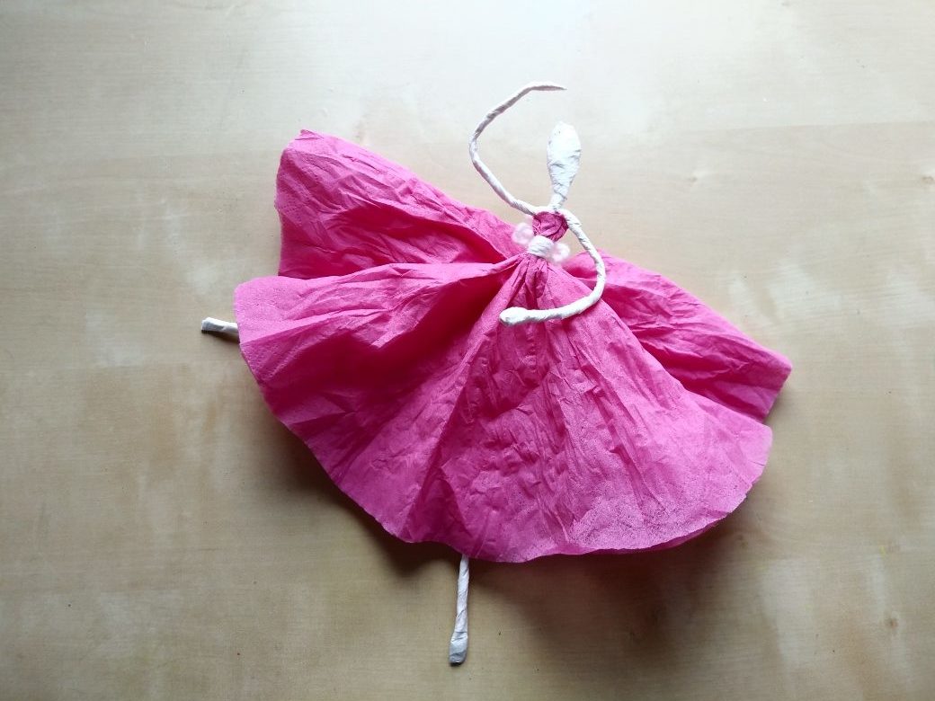 Do wykonania tancerki przydadzą się umiejętności techniczne. Szkielet baletnicy musimy wykonać z drutu, poproś kogoś dorosłego o pomoc. Owinięcie drutu bibułą i wykonanie sukienki nie powinno być trudne. Kieruj się instrukcją na zdjęciach, a na pewno osiągniesz sukces i satysfakcję.