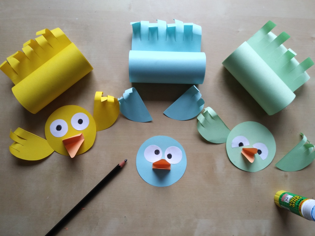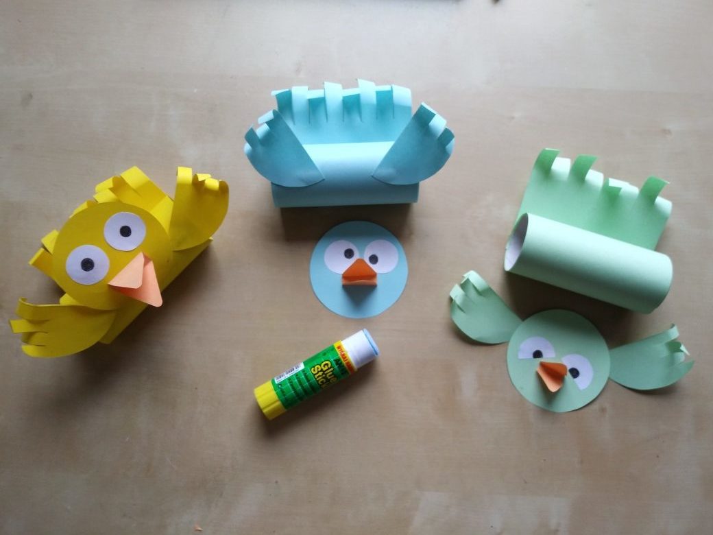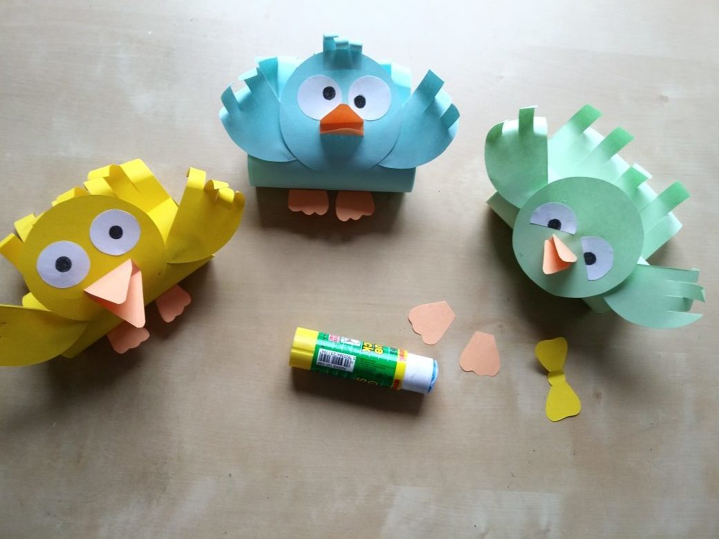 Zielona przyroda zagościła już na naszych łąkach i drzewach. A w gniazdach pojawiły się pisklęta. Ptaszki wykonasz wykorzystując rolki z papieru toaletowego, kolorowy papier, klej i nożyczki. Kieruj się instrukcją na zdjęciach.
