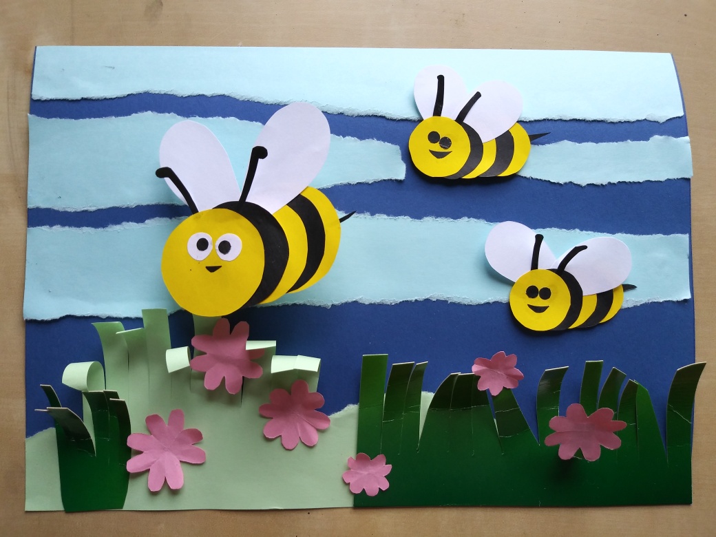 Światowy Dzień Pszczół obchodziliśmy 20 maja 2020 r. Pszczoły nie tylko produkują miód, ale poprzez zapylanie roślin, są producentami żywności. Możemy więc śmiało powiedzieć, że to najważniejsze zwierzęta na świecie. Pamiętając o naszych małych przyjaciołach wykonamy kolorową, wydzieraną z papieru łąkę i wesołe pszczoły.