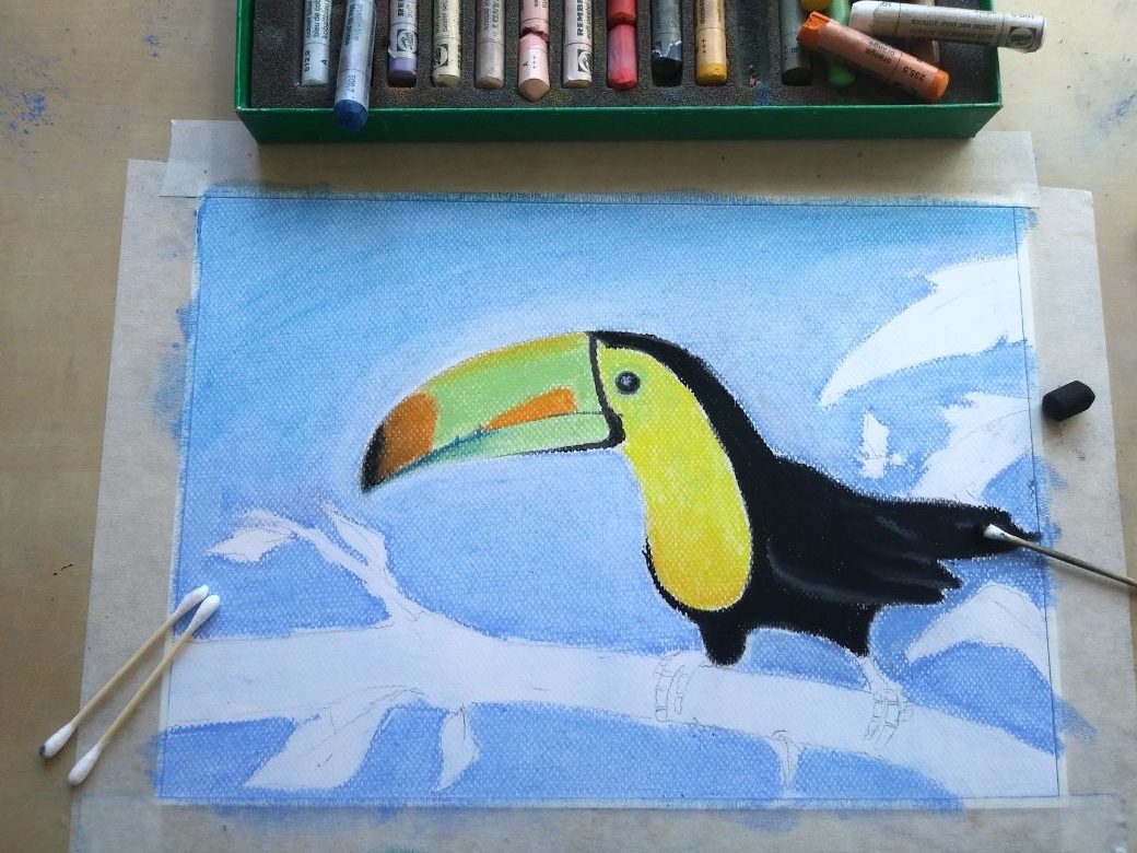 41. TUKAN – nauka rysowania ptaków pastelami suchymi