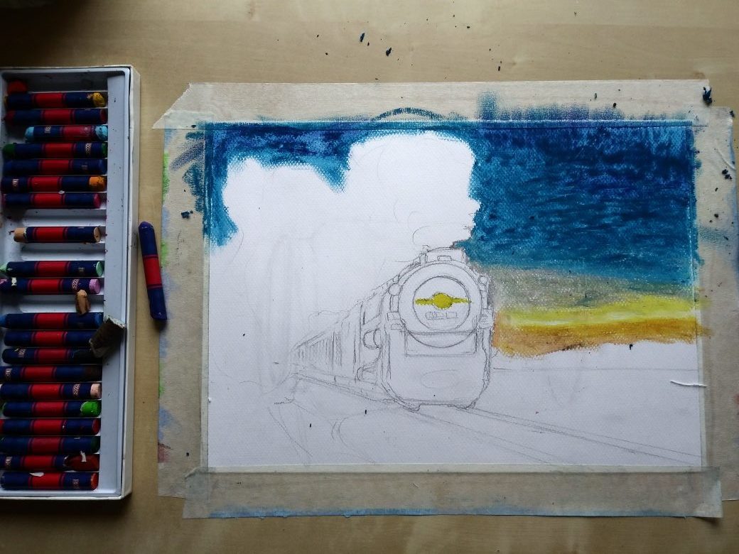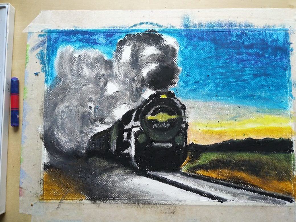 42. PEJZAŻ Z LOKOMOTYWĄ – nauka rysowania perspektywy zbieżnej
