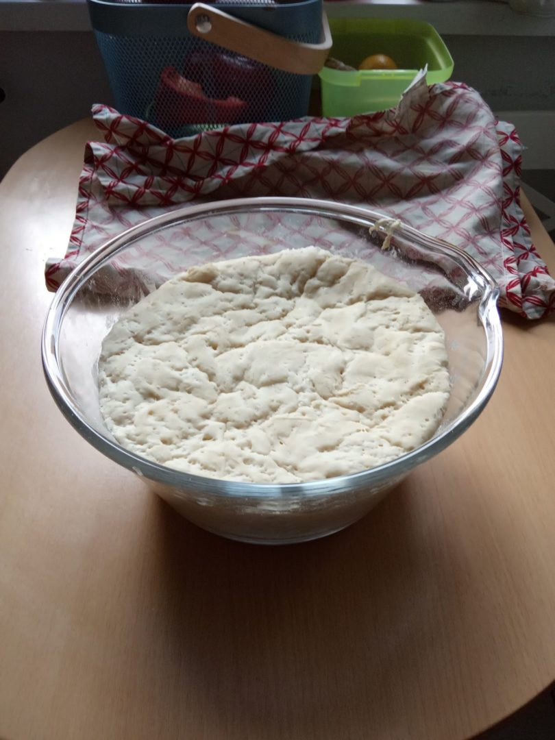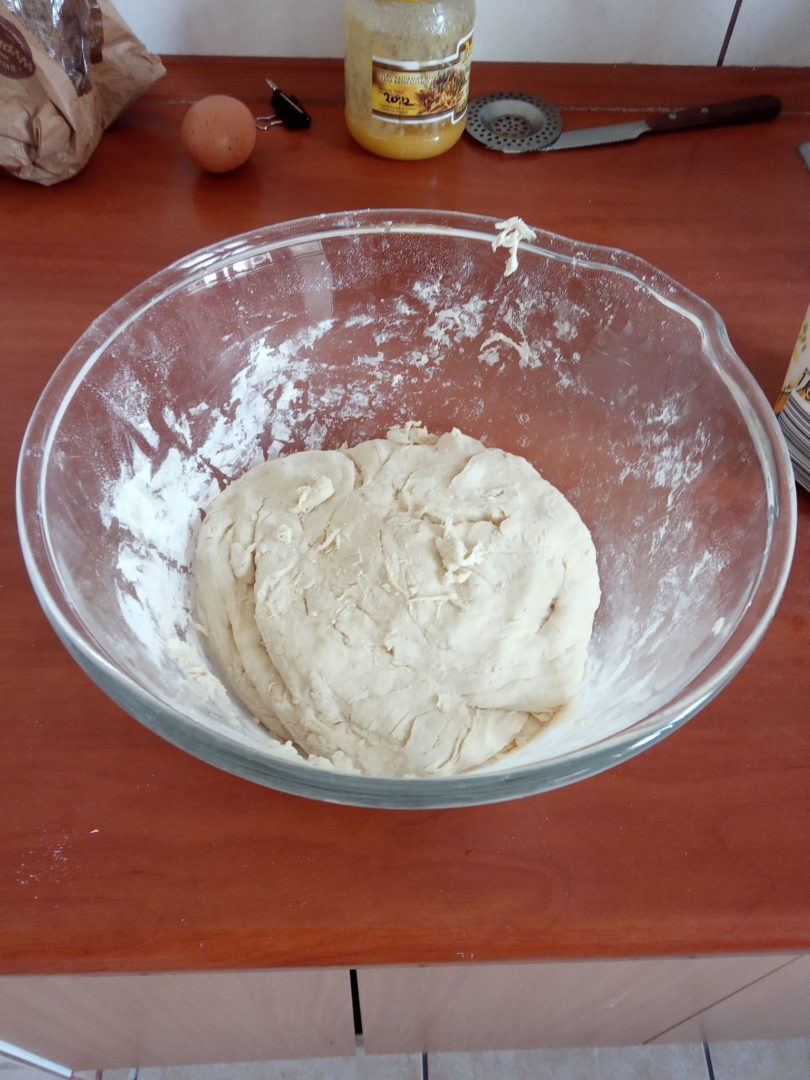 2. Gdy wszystko wymieszasz czeka Ciebie formowanie ciasta które musi być elastyczne i odkleja się od dłoni. Takie elastyczne ciasto przykrywamy ręcznikiem kuchennym i odstawiamy w ciepłe miejsce na ok 45 min.