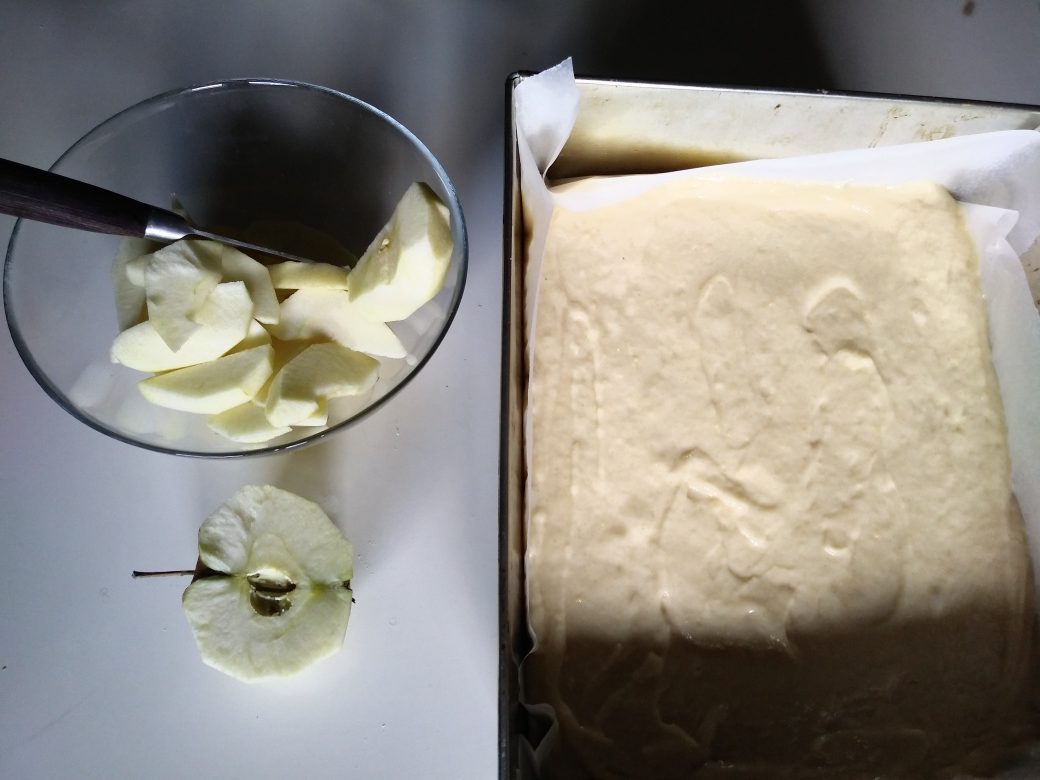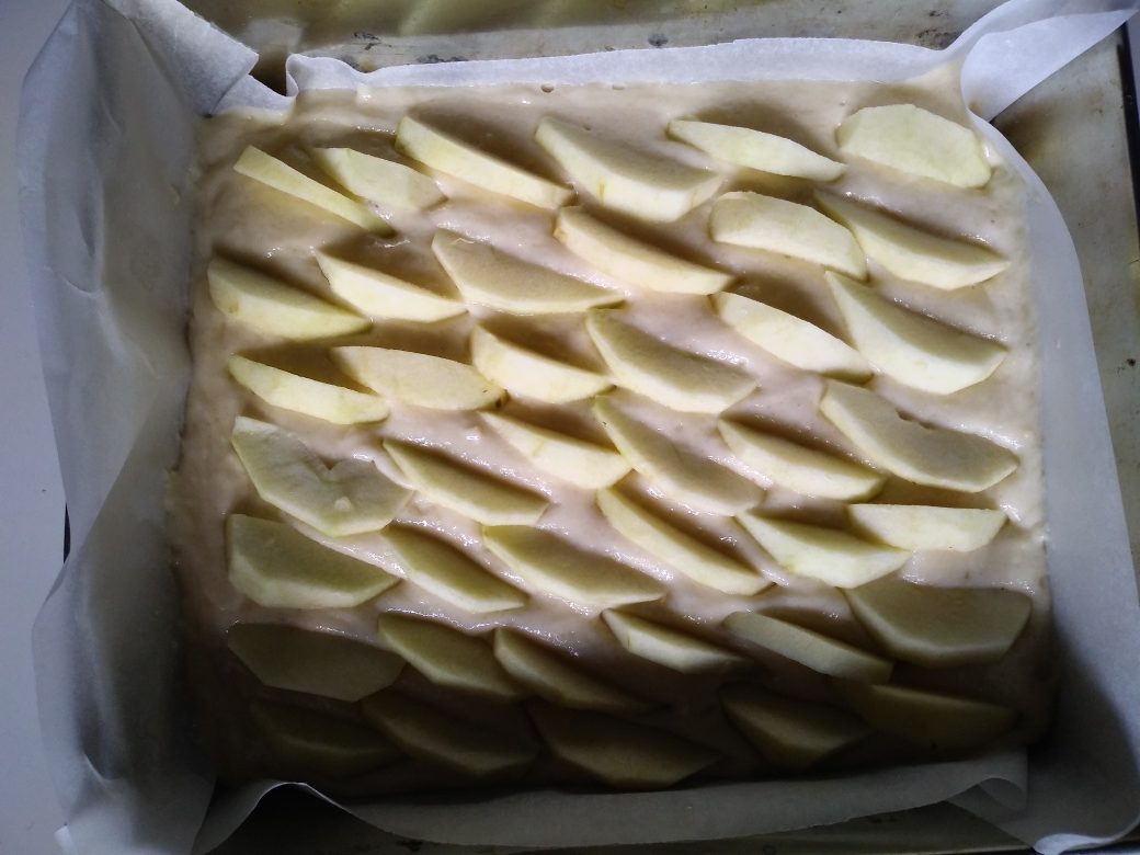 - Wylewamy ciasto na blachę wyłożoną papierem do pieczenia.